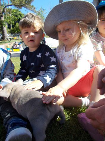We were all very excited to meet Noah, Earl, Darcie and Honey, 4-week-old puppies. The children enjoyed learning about how to care for a puppy, what they like to eat and drink, explore the texture of their coats and discuss how big they may grow. The children used tape measures to record the length and width of a puppy and compared this to the length and width of themselves. This learning opportunity led to some very interesting discussions about growth, age and numbers. The children were very pleased to hear that the puppies are re-visiting the centre again in a few weeks so that we can further explore their growth and weight.
